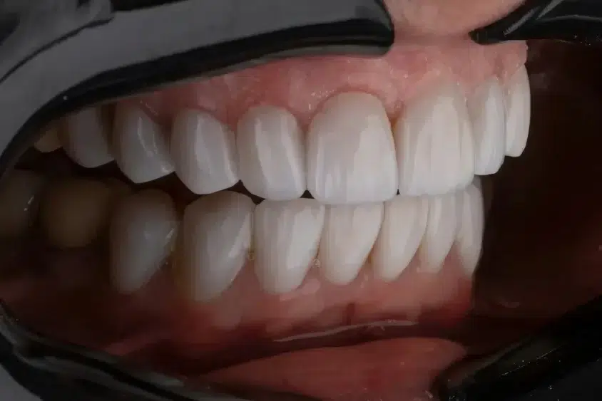 特に上の歯は笑ったときに最も見えやすいため、裏側に装置を付けることでほとんど気づかれずに矯正ができます。一方で、下の歯はもともと見えにくいことが多いため、透明のクリアブラケットを使用することで審美性を保ちながらも負担を抑えることができます。
