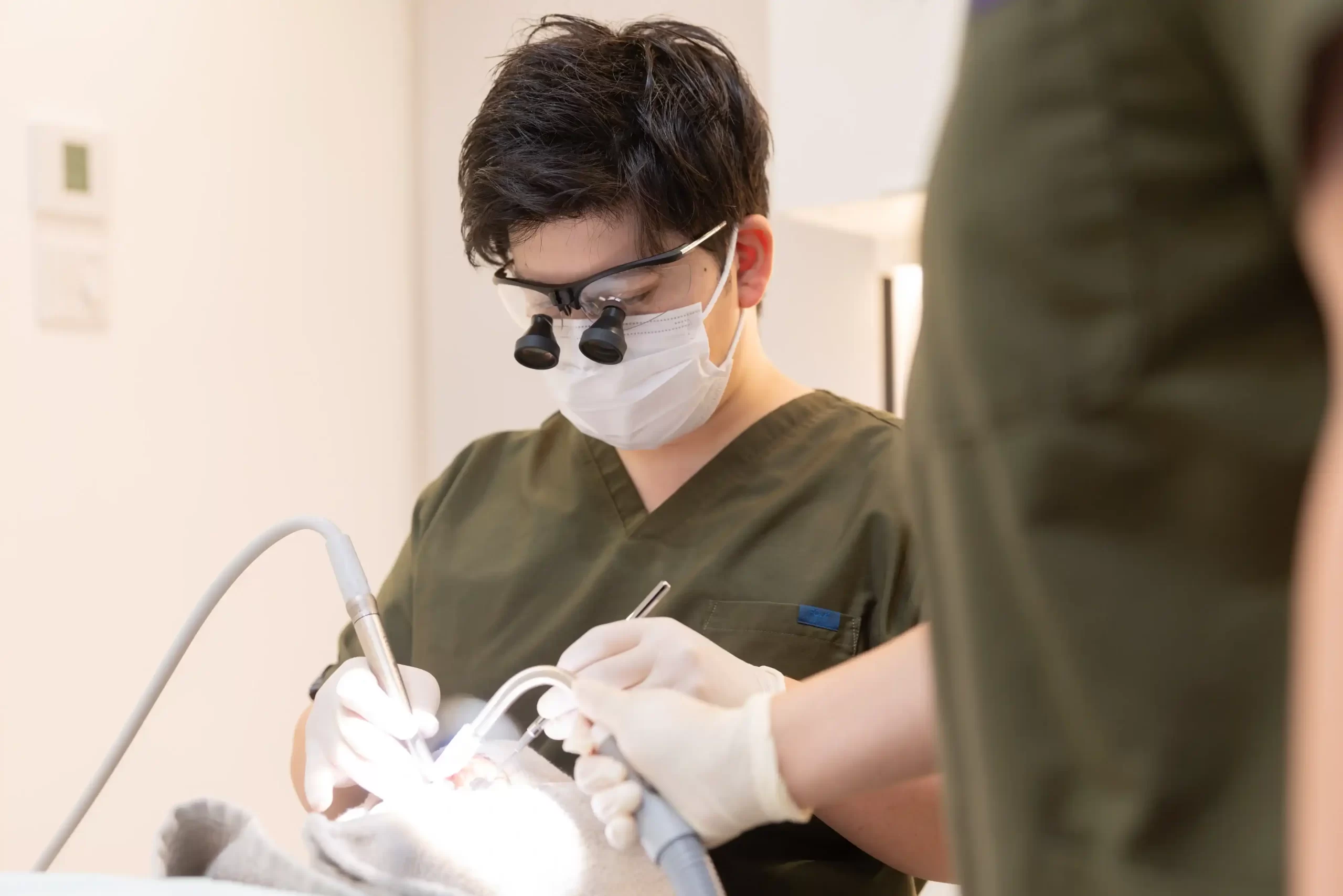 矯正治療の途中にむし歯や歯ぐきの腫れが起きると、装置の撤去や治療中断が必要になる場合があります。当院では一般歯科治療も全て院内で対応できるため、むし歯治療・歯周病治療・クリーニングまでワンストップで管理することができます。 これにより、矯正治療を止めずにスムーズに進行でき、治療の安全性・確実性が大きく高まります。