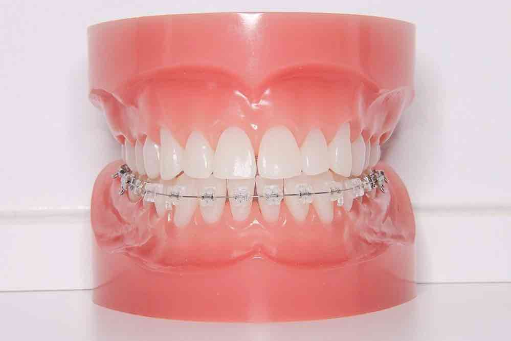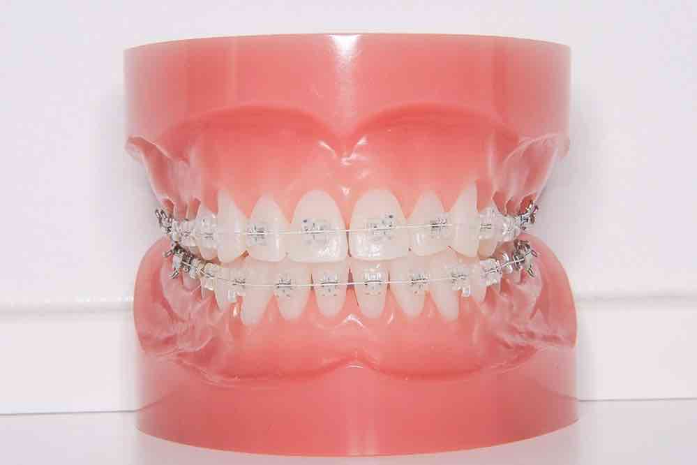 クリアブラケットに加えて、白色または歯の色に近いワイヤーを組み合わせることで、ワイヤー矯正の中でも特に目立ちにくい方法です。金属ワイヤーよりはやや摩耗が早いことがありますが、審美性を重視したい方には非常に人気があります。
